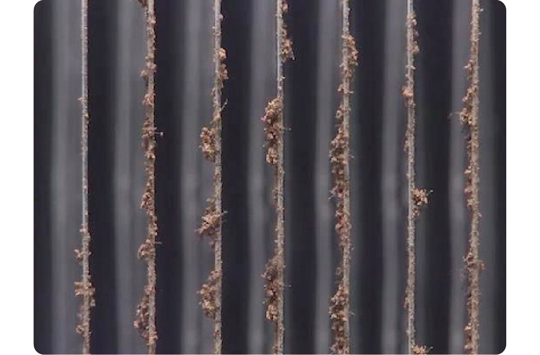 灰塵油污沖洗后的熱交換器翅片恢復潔凈,輸出清新空氣