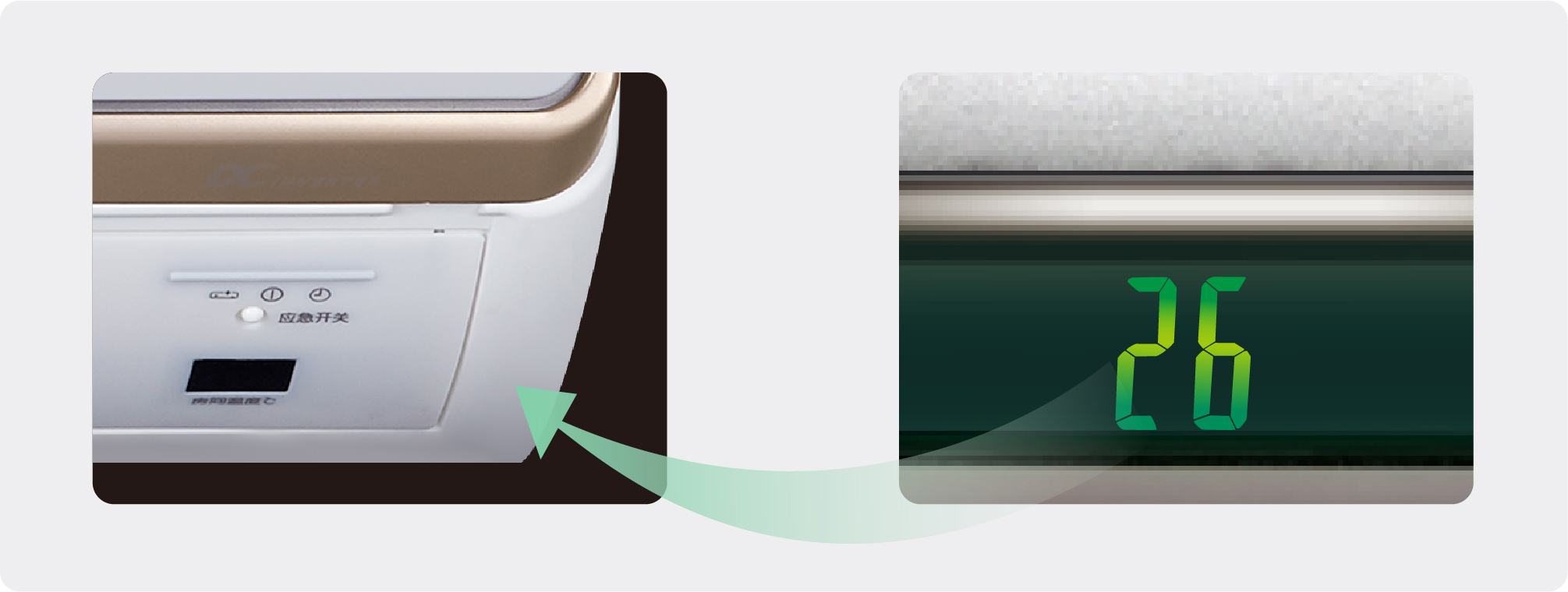 機身本體采??板透出式溫度顯示,輕按遙控器,室溫及運轉?式即可透過?亮?板顯示,清晰??貴典雅。亦可通過遙控器“消燈”按鈕,實現?鍵消除顯示,不影響夜間睡眠。