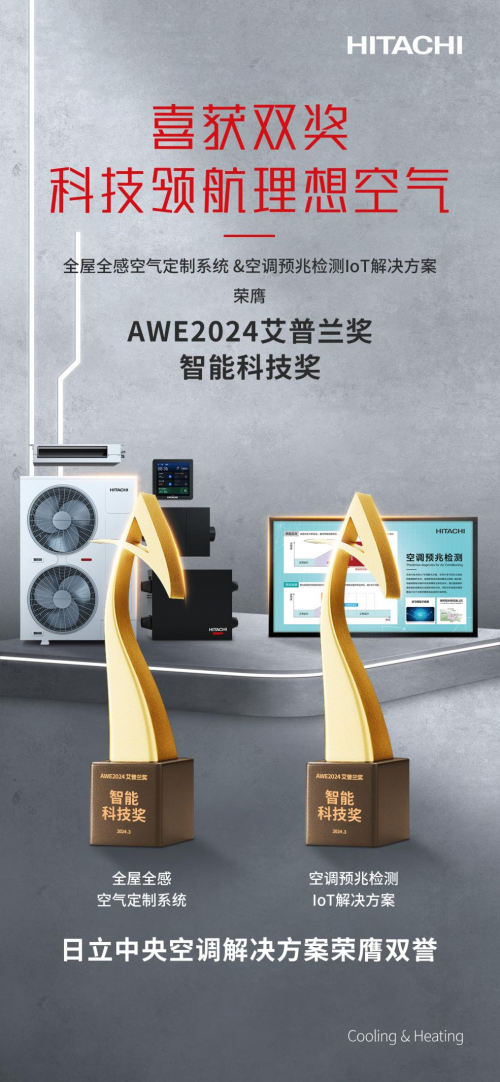 2024中國家電及消費(fèi)電子博覽會(huì)(AWE2024)上,日立中央空調(diào)驚艷亮相,發(fā)布最炫空氣定制解決方案。他們的全新全屋全感空氣定制系統(tǒng)和超前的空調(diào)預(yù)兆檢測(cè)IoT解決方案,雙雙斬獲AWE2024艾普蘭“智能科技獎(jiǎng)”。