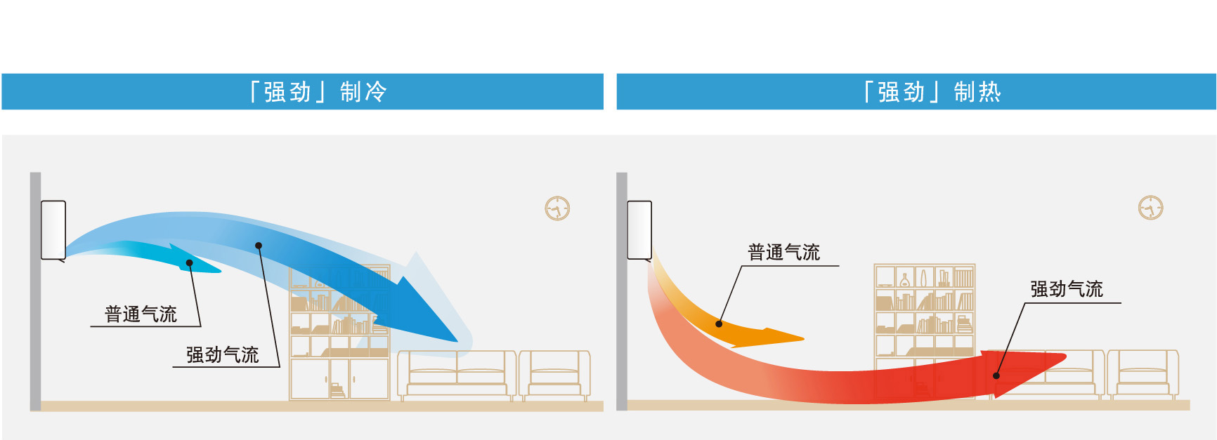 輕松操作「強勁」按鍵,啟動更快速、更舒適的“強勁”運轉(zhuǎn)模式,壓縮機以高轉(zhuǎn)速進行運轉(zhuǎn),快速強勁營造舒適的室內(nèi)溫度。