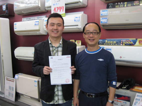 右側為上海日立家用電器有限公司 杭州辦事處 馮鋼主任