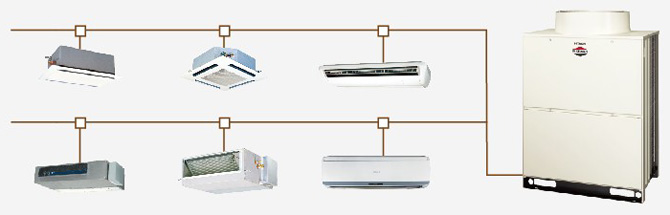 一個系統最多可連接64臺室內機,室內機共有11種型式100多個規格可供選擇;通過輪換運轉技術,雙后備運轉功能,提高系統運行穩定性。